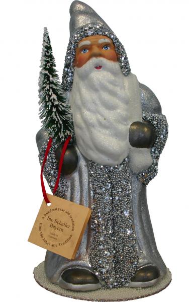 Alexander Taron 1625 9.5 x 5 5 in. Schaller Paper Mache Candy Container - Santa Claus in a Silver Beaded Coat
